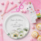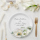 Este prato floral romântico apresenta um fundo branco simples e elegante com flores de ranunculus em aquarela. Um delicado buquê de ranunculus e folhagens é retratado na parte inferior. Nomes de uma recém-casada e data de casamento são impressos acima. Você pode personalizar o prato para incluir seus próprios nomes ou texto personalizado.
