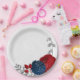 Prato De Papel romântico vermelho e marinho flores de prata botân