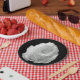 Prato De Papel rosa branco sobre fundo preto