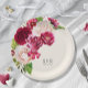 Um floral brilhante e ousado de rosas em tons de burgundy e creme é o ponto focal de muitas das peças deste suite de casamento que também contém textos elegantes e layouts modernos de design. A placa de papel do casamento mostrada aqui tem uma borda lateral de rosas. Insira facilmente sua data de casamento e noiva e as iniciais do noivo usando o modelo fornecido. Procure ID584 para ver todas as peças correspondentes neste belo conjunto de casamento.
