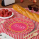 Prato De Papel Rosa E Laranja Brilhante