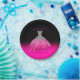 Uma design de Quinceañera festiva, mas elegante, que apresenta um brilhante tom rosa-quente e prateado vestido espanhol num fundo cintilante rosa-quente a preto. Apresenta muitas cinzas a rosa quente para uma noite mágica. Design composto por Designs Holiday Hearts.