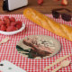 Prato De Papel Rosa vermelha Ruby com Destaques Brancos