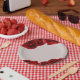 Prato De Papel Rosas Aguadas Modernas Vermelhas com Rubor Bege