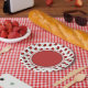 Prato De Papel Rosas Vermelhas e Pérolas Elegante Floral para Cas