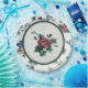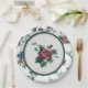 Este Prato de Papel Rose Cross Stitch com efeito de bordado digital falso é perfeito para um evento estilo shabby chic ou vintage