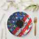 rosquinha vermelha, branca e azul tridimensional com aspersores.