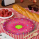 Rosquinha deliciosa cor-de-rosa em uma placa. Os doces nela serão mesmo mais doces!