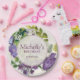 Plum roxo aquoso floral com folhas verdes e vinha em placas de papel botânico de festa de aniversário de marfim/alabastro. Personalizada com o nome do convidado de honra e a data do seu partido. Entre em contato comigo para obter assistência com suas personalizações ou para solicitar outros produtos Zazzle correspondentes ou coordenadores para o seu partido.