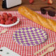 Prato De Papel Roxo e bege Checkered