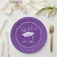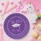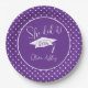 Púrpura Ela Fez Graduação. Comemore seu formando com estilo com essas modernas festas de formatura roxas e brancas e decoração de festas com boné de formatura branco, anotações para "Ela fez" e seu nome e ano de aula. Tableware de graduação roxo e branco.