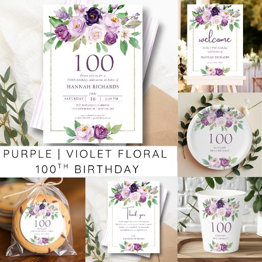 Purple | Violet Floral 100th BirthdayCriado por Natalie