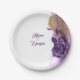 Casamento elegante, roxo de ameixa e ouro, pratos de papel de festa