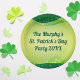 É dia de Rua, festa de Vamos! Esta placa de papel mágica e cintilante de Saint Patricks apresenta belas estrelas flutuando em torno de bonito fita verde ao longo da fronteira. Esta decoração de mesa personalizada e fofa funciona bem para uma divertida noite festiva de bebendo e festas de festas do Santo Paddy ou para um janto clássico com os seus amigos irlandeses.