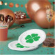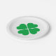 A placa de papel é mostrada em uma Rua verde. impressão de trevo de Patrick na placa redonda. Personalize este item ou comprar como está. Imagem do stock vecteezy.com