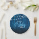 Esta placa de papel do CHURRASCO de 4 de julho apresenta um fundo azul-escuro rústico de madeira acentuado com cordas de luz. Isto é perfeito para o churrasco do quintal da sua família em 4 de julho.