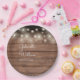Prato De Papel Rustic Barn Wood String Lights Script Casamento