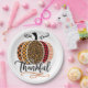 Serve up gratitude with this festive paper plate featuring a bold patchwork pumpkin in cozy autumn patterns—buffalo plaid, leopard print, polka dots, and classic orange. The elegant "Thankful" script and swirling stem details add a touch of whimsy and warmth, making this plate perfect for Thanksgiving dinners, Friendsgiving feasts, or fall-themed gatherings. Whether you're hosting a rustic harvest party or a cozy family meal, this design brings heart and style to every bite.