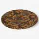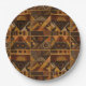 Warm geometric stripe pattern paper plate featuring tribal-inspired diamonds, zigzags, and textured vertical bands in earthy brown, terracotta, tan, beige, and charcoal tones. A cozy boho design ideal for southwestern décor lovers, rustic style fans, and anyone drawn to earthy, handcrafted aesthetics.