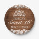 Prato De Papel Rústica Madeira e rendas brancas Tiara Sweet 16