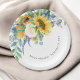 No encantador estilo de vassoura, este adorável design de prato de papel de casamento apresenta um buquê sem carinho de girassóis amarelos e rosas brancas com uma paisagem verde de eucalipto. O estilo transmite um encanto rústico casual e a felicidade e alegria que você sente no dia do seu casamento. Se o seu casamento será realizado ao ar livre e em um local de casamento interno, este design funciona lindamente para uma variedade de cenários. Personalize o modelo de texto com seus nomes e data do casamento. Este prato é também uma escolha maravilhosa para festas de noivado, chás de panela e outras celebrações para a noiva e o noivo. Nota: A placa está disponível em 2 tamanhos; 7 e 9 polegadas.