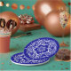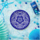 Esta mandala branca senta sobre um fundo azul brilhante e profundo. As cores são inteligentes e introspectivas. Parte da coleção Jarn Mandala.