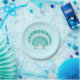 Digital aumentada, ilustração de um escudo de scallop - azul do vintage dos meios mistos de água-marinha macio com branco