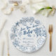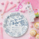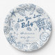 Sea you soon seashells beach boy baby shower monogrammed paper plates. Blue preppy seashells baby shower personalized paper plates, beach baby shower printed paper plates, sea turtle baby shower personalized table decor, summer baby shower party plates, hand drawn doodle sketch seashells baby shower paper plates, hand writing vintage baby shower personalized party plates