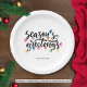 Sábios Saudações Às Luzes De Natal Festivas Nomeiam Pratos De Papel. Adicione um toque festivo e pessoal ao seu entretenimento de Natal com estas placas de papel personalizadas que apresentam as saudações dos "GREETINGS" da SEASON em uma tipografia de escrita de caligrafia moderna, destacada com luzes de Natal coloridas brilhantes e texto personalizado. ASSISTÊNCIA: para obter ajuda sobre a modificação do design, entre em contato com o designer ANTES DE ENCOMENDAR, por meio da guia MENSAGEM de bate-papo Zazzle abaixo, ou envie um e-mail para makeitaboutyoustore@gmail.com.