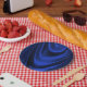 Pratos de papel de seda azul real. Estes belos pratos de papel azul real podem ser personalizados com texto no estilo de letra de sua escolha.