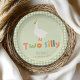Adicione diversão de fazenda de bobo ao segundo aniversário de sua criança com estas adoráveis placas de papel "Dois Bobos"! Apresentando um ganso lúgubre em um chapéu de festa amarelo e uma borda verde de gingham, essas placas neutras em relação ao gênero são perfeitas para uma celebração doce e caprichosa. Personalize com o nome do seu filho por um toque personalizado divertido na mesa da festa!