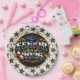 A Beautiful Paper Plate With Black And Gold Stars For The Graduation Class Of 2026 Silver Center With Cap And Diploma