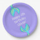 Prato De Papel Sereia Personalizada Roxo de Aniversário