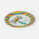 Serve up the party food on this vibrant Sesame Street paper plate! Featuring Big Bird, Elmo, Ernie, and Oscar the Grouch stacked near their famous street sign, this design is instantly recognizable and fun. The outer edge of the plate showcases bold, diagonal stripes in rainbow colors—red, yellow, blue, and green—which perfectly frame the central, customizable area announcing that the celebrated child "IS TURNING ONE." These sturdy, themed plates make cleanup easy while keeping your first birthday party wonderfully colorful and coordinated.
