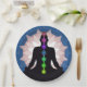 Sete Chakras Yoga Paper Party Plate com cores de fundo personalizáveis.