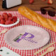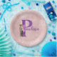Prato De Papel Shimmer Roxo - Letra Ilustrada P - Adicionar Nome