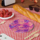 Street-style vibrant irregular sunburst mosaic in bold retro 90s tones.