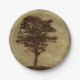 Prato De Papel Silhueta de árvore em fundo de bronze