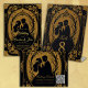 Silhueta elegante de noiva e noiva rodeada por ornamentados e embelezamentos. A design é feita numa luxuosa combinação de ouro e preto, que expele elegância e sofisticação. Os detalhes intrincados dão ao convite um toque romântico e clássico.