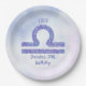 Esta bonito placa de papel da festa de aniversário de Libra roxa e lavanda apresenta seu sinal astrológico do Zodiac em um belo brilho como as constelações. Personalize esta decoração bonitinha com seu nome em script cursivo para alguém com aniversário de final de setembro ou início de outubro.
