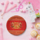 Prato De Papel Símbolo Dourado de Dupla Felicidade com flores e p