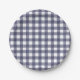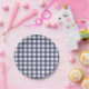 Simple, minimal navy gingham pattern paper plate.