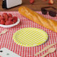 Prato De Papel Simples Brilho Amarelo ensolarado e branco riscado