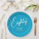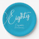 Simples moderno Script Aqua Blue 80 Festa de aniversário Especial e elegante Pratos de aniversário Aqua Blue especialmente projetados para seus amigos que estão transformando o maravilhoso marco de 80! Essas placas de papel personalizadas adicionam o toque perfeito às configurações de mesa da festa de aniversário. Planeje sua festa com mais festas de aniversário da nossa loja! Seus amigos ou família amarão uma festa de aniversário temática Elegante Aqua Blue!