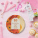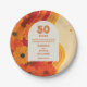 Esses pratos de papel funky e retrô de aniversário de casamento de 50 anos podem ser personalizados com suas próprias informações em tipografia groovy. Projetado por Thisisnotme©