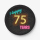 Sinal retrô brilhante de neon no muro de tijolos para 75 anos