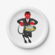 Satã segurando uma frigideira onde ele está roendo ossos de pecadores. Este design parece realmente eficaz nestas placas de papel