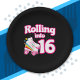 Este design de skate é perfeito para uma festa de patins ou tema de aniversário para uma criança de 16 anos. Se a aniversariante ou o aniversariante adora rodar o skate, eles vão adorar este design de skate! Apresenta uma citação de aniversário com estilo retrô "Rolando em 16" com gráficos de skate de rolo legal com arco-íris e estrelas divertidas e únicas. Design de festa de skate para um aniversário de 16 anos!