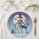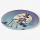 Prato De Papel Skeleton Dançando Sob O Halloween Da Lua