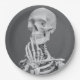 Prato De Papel Skeleton Skull Halloween Cinza Preta e Branca